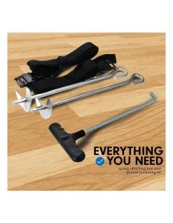 Safety Instructions:Trampoline must be installed on a flat, solid, level surface & be properly secured in the event of windy conditions. Trampoline MUST NOT BE installed on stones, gravel, crushed rock, sand, uneven grass, uneven concrete, soft or loose surfaces. Improper installation or usage not in accordance with these instructions may result in serious injury and/or damage to the product, voiding all implied and express warranties.
