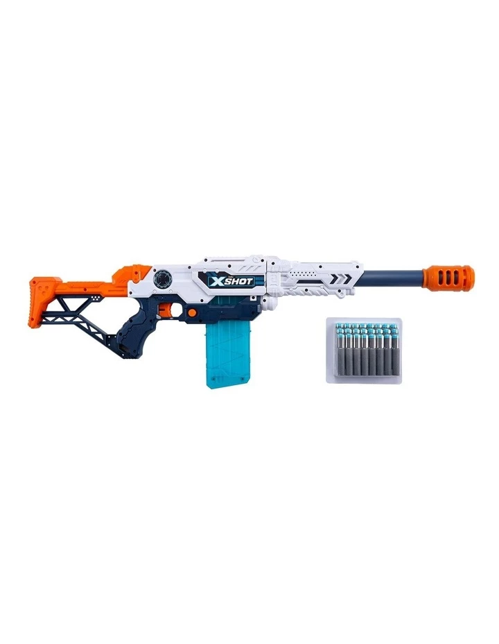 The X-Shot Max Attack is a clip blaster that allows you to shoot 10 darts up to 18 meters / 60 feet in a quick succession without reloading! When youre out of ammo getting back into action is simple: release the dart clip, fill with darts, reload and blast!