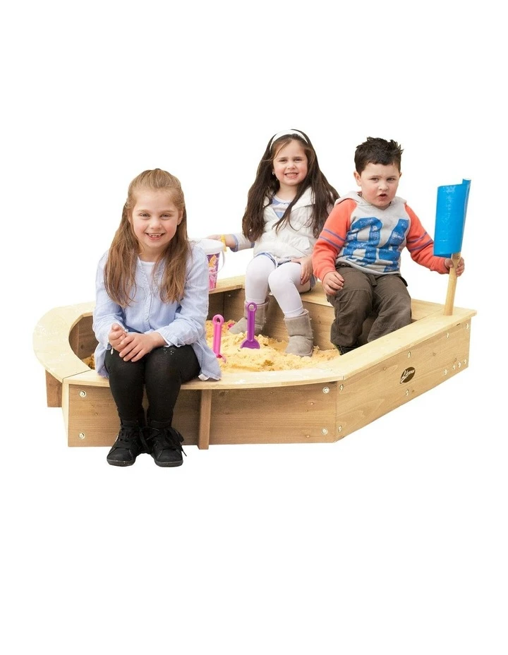 Welcome aboard the SS. Imagination. The Boat Sandpit is the perfect way to get kids excited about playing and creating outdoors in their own little vessel. The aft (rear) compartment is perfect for storing treasure before little pirates have a chance to bury it.