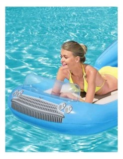 Sit back, relax and feel the breeze through your hair in the Bestway Classic Convertible Lounge, a nostalgic take on inflatable pool floats. The lounge has classic car vibes with an old-school grill printing and a windshield that doubles as an air pillow for resting your head. The lounge is easy to inflate and deflate, while the sturdy inner construction allows the float to easily re-inflate without losing shape. Take the Classic Convertible Lounge out for a spin on your next pool day!