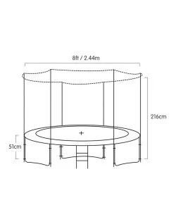 CONTENTS: * 1 x 8ft Trampoline * 1 x Basketball Set * Carton Dimensions: * A: 130 x 49 x 16 – 23kg * B: 122 x 33 x 15 – 20kg * C: 100 x 50 x 5 – 3.8kg