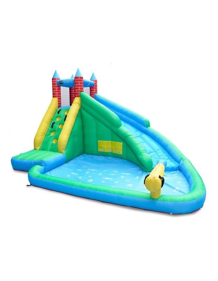 Have a wet and thrilling summer with the Windsor 2 Slide and Splash. Part jumping castle, part water park, the Windsor 2 has a huge 3m slide and climbing wall. Stay cool in the hot season with a splash pool and built in water turret.