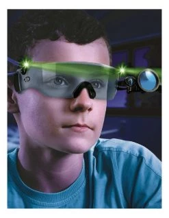 No Secret agent is complete without a pair of Discovery Toys Night Vision Spy Goggles. The goggles feature two powerful green LED lights that let you see in the dark.