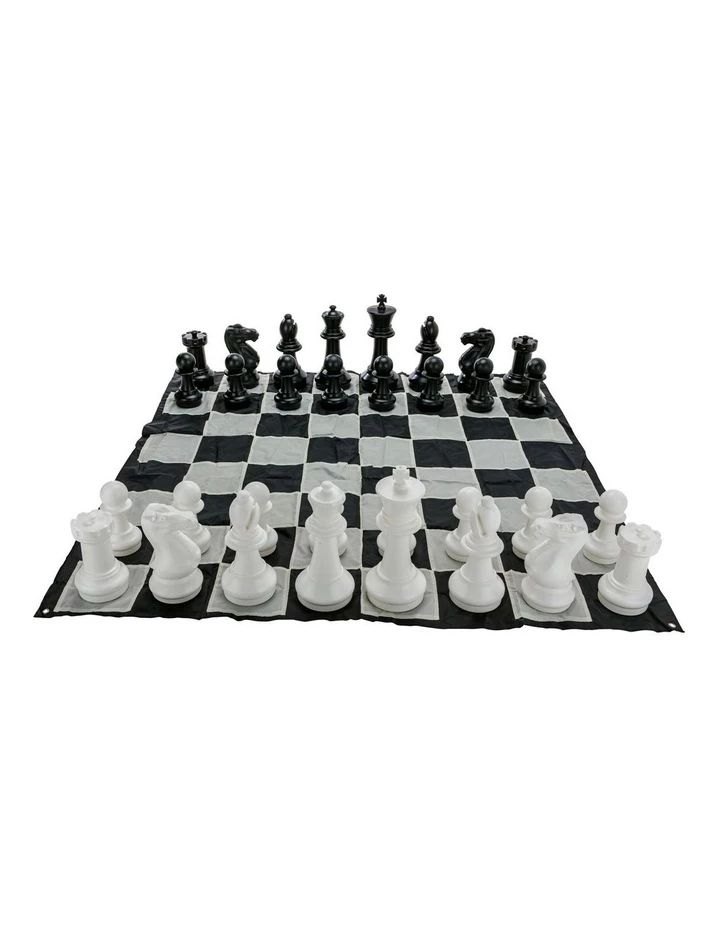 Mega Chess Specifications: 16 black Chess pieces & 16 white Chess pieces Pawn Height 22cm King Height 40cm Nylon mat 1.5×1.5m Rules included UV protected Waterproof Pieces durable plastic construction Age: 6yrs+ Mega chess? backyards, resorts, parks, campgrounds, hotels, sports areas, time shares, children?s hospitals, anywhere there?s a large flat surface to play. Unfortunately our courier drivers do not deliver to P.O Box addresses, so please advise of an alternative address such as an office or workplace for delivery.
