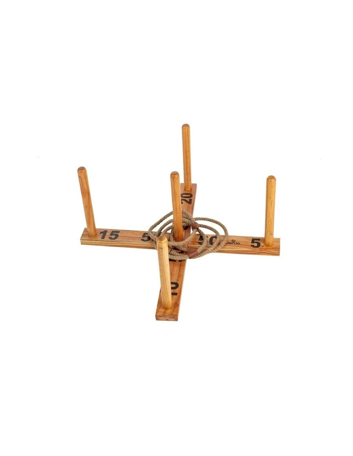 Quoits Set Specifications: 4 rope circles approximately 15cm in diameter 1 pine wooden cross (40cm across) Rules included Ages: 3yrs+ Quoits is a traditional game which involves throwing the rings over the peg to win points. The objective of the game is to throw five rope quoits onto the peg without missing! The first player to reach 500 points is the winner. This game is ideal to be played on backyard, beach, social events, weddings, family fun, or general drinks with friends. Unfortunately our courier drivers do not deliver to P.O Box addresses, so please advise of an alternative address such as an office or workplace for delivery.