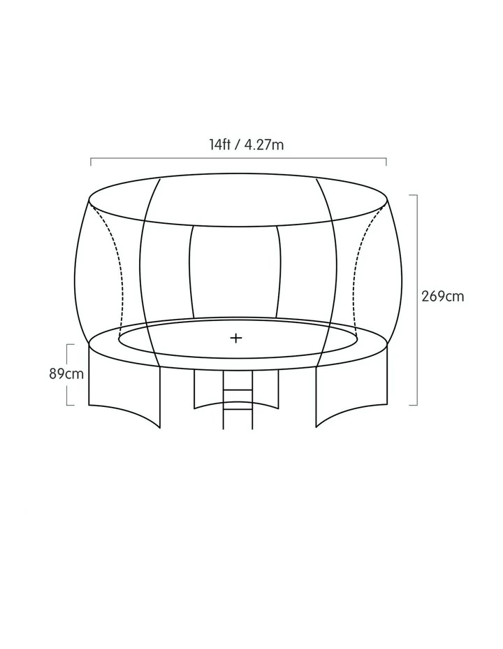 CONTENTS: * 1 x 14ft Springless Trampoline * 1 x Shoe Storage bag * 1 x Anchor Kit * Carton Dimensions: * A: 114 x 36 x 21 – 13kg * B: 122 x 42 x 15 – 24kg * C: 122 x 42 x 15 – 24kg * D: 114 x 33 x 19 – 20kg