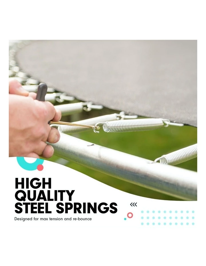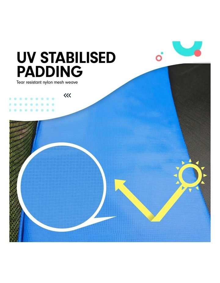 This is a heavy trampoline and uses linked legs and grounding straps for superior stability. The structure of the legs also minimises the tendency for legs to dig into the ground. The padding cover of the trampoline is UV stabilised and has embedded nylon mesh, ensuring the padding will last for years under the harsh Australian sun.