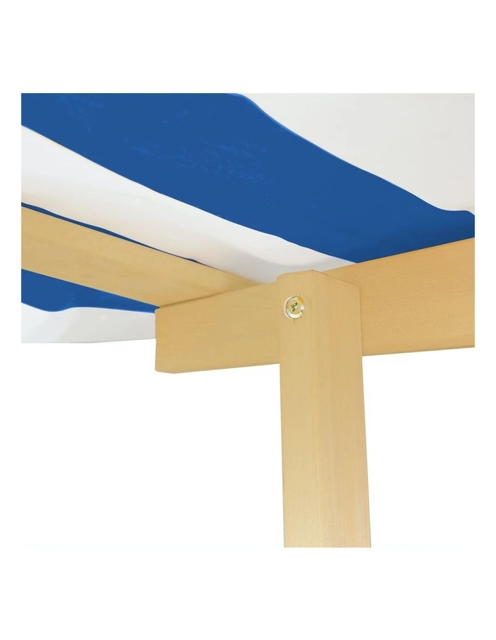 Capture the excitement of the beach for your little ones at home with the cabana styled Playfort Sandpit. A huge play area and storage buckets give them the ultimate beach experience, shaded from the sun with a white and blue UV-protected canopy.