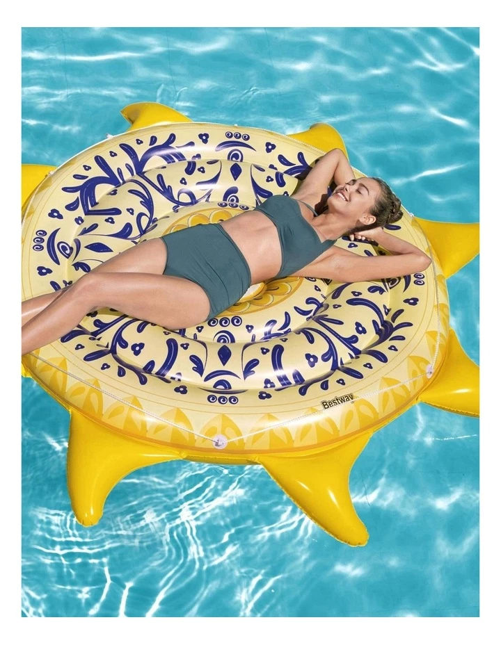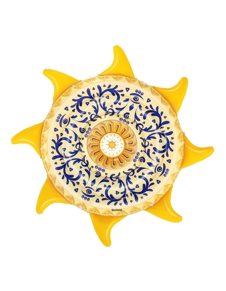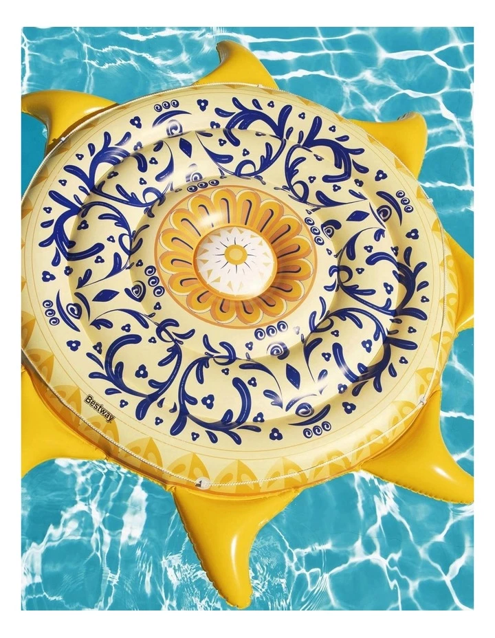 The Bestway Sunny Sicily Island brightens any pool with its creative design, shape and style. This sun-shaped island features patterns inspired by traditional Sicilian pottery. Relax on the wide sitting area, or grab onto the wraparound grab rope while you take a dip. Quickly inflate the Sunny Sicily Island and it’s ready for any pool or lake experience. Deflation is fast, simple and allows for convenient storage so you can use it season after season. Enjoy a day under the sun, and let this beautiful float transport you to the calm, beautiful waters off the coast of Italy.