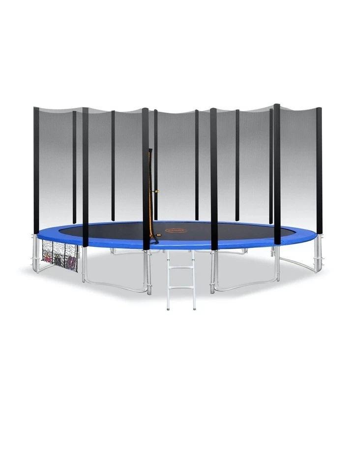 This is a heavy trampoline and uses linked legs and grounding straps for superior stability. The structure of the legs also minimises the tendency for legs to dig into the ground. The padding cover of the trampoline is UV stabilised and has embedded nylon mesh, ensuring the padding will last for years under the harsh Australian sun.