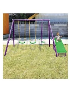 Treat your kids to an awesome playground right in your own backyard! This Kahuna playset features two classic swings, one tandem swing and a smooth slide for active, all-day fun. With its eye-catching colours, it’s sure to spruce up your outdoor play area.