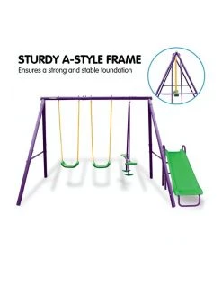 With four total seats, this swing set needs to be extra tough and sturdy. It’s constructed with solid metal A-frames, crossbars and chains for all-around durability, plus ground anchors for a stronger base. It’s also weatherproof, with a powder-coated surface to keep rust and corrosion at bay.