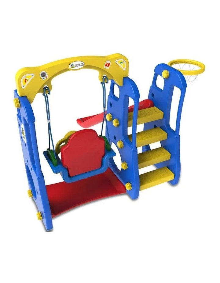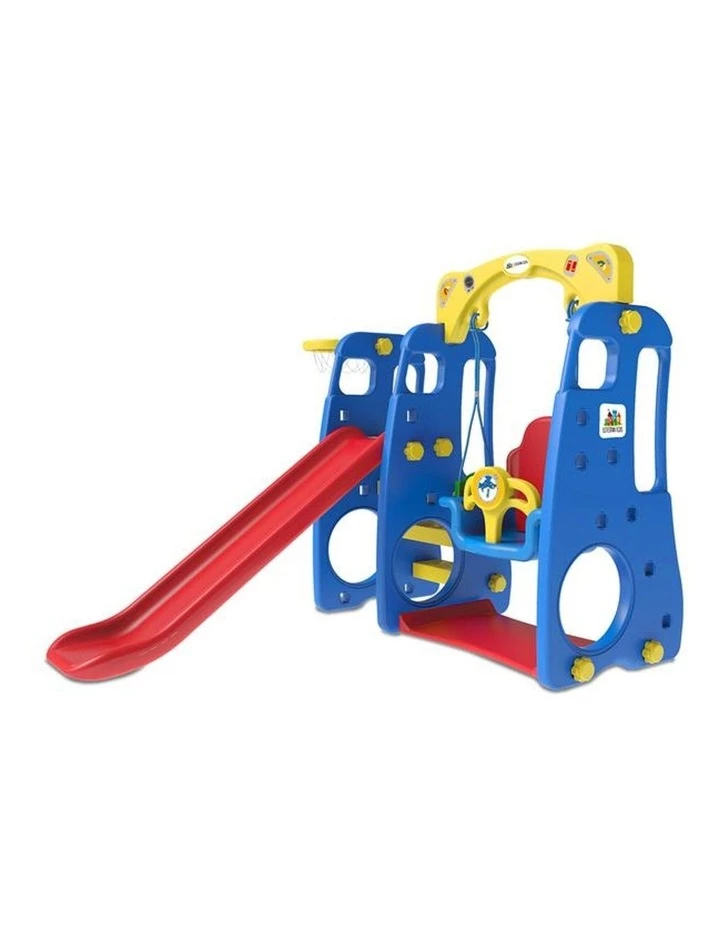 Playing is the best way to learn when we’re young. The Ruby 4 in1 swing and slide for kids under 3 is the ideal play centre for little learners to develop cognitive and motor skills with a 1.2m climb and slide, secure bucket swing, interactive music button, and basketball hoop.