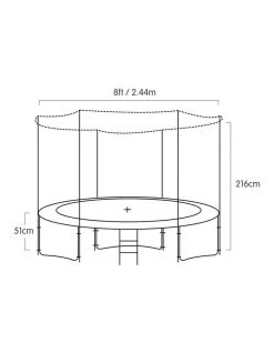 CONTENTS: * 1 x Powertrain 8ft Trampoline * 1 x Basketball Set * Carton Dimensions: * A: 135 x 20 x 20cm – 45kg