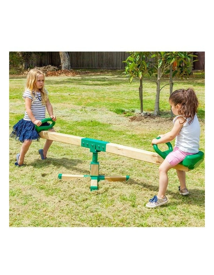 Reach thrilling heights flying through the air on the Rocka See Saw. This strong timber see saw is bigger with a higher arc than metal see saws. Along with the 360 rotation, the Rocka has an enormous arc to keep little thrill seekers entertained for hours.