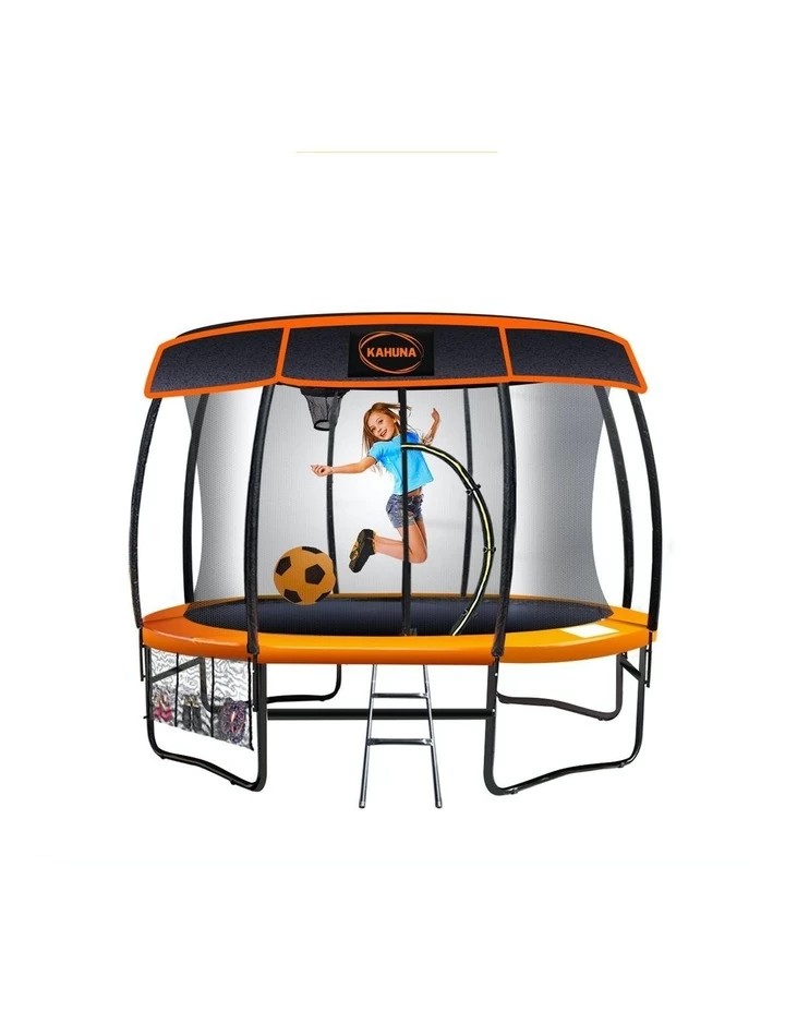 Cover the trampoline with the removable roof to protect the kids from sun and rain, allowing them to have fun without interruptions from mild weather conditions.