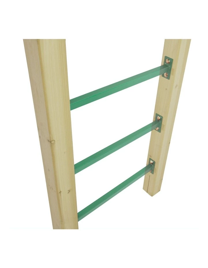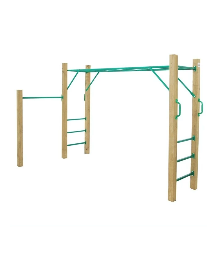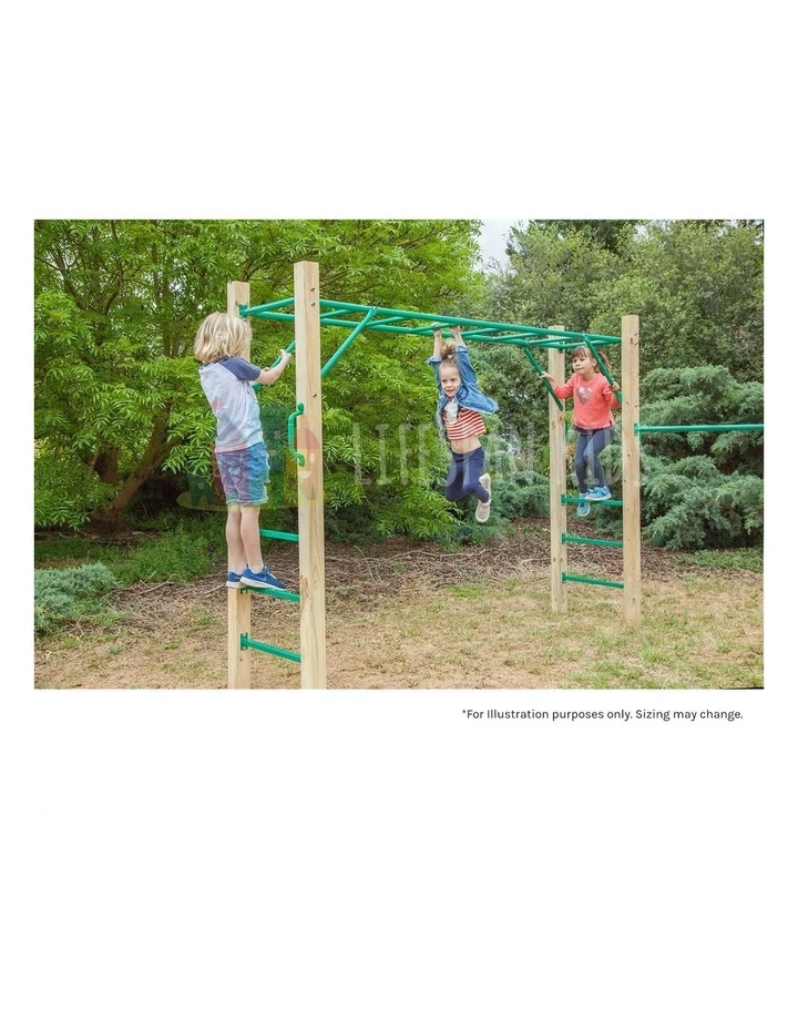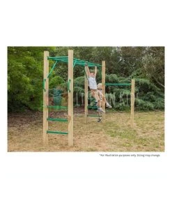 The height of the bars can be set at any level during set up, up to an appropriate height of 2m to suit kids of different ages and statures. Side handles are provided for easy climbing, and a cool side horizontal bar is provided for fun tumbling and swinging.